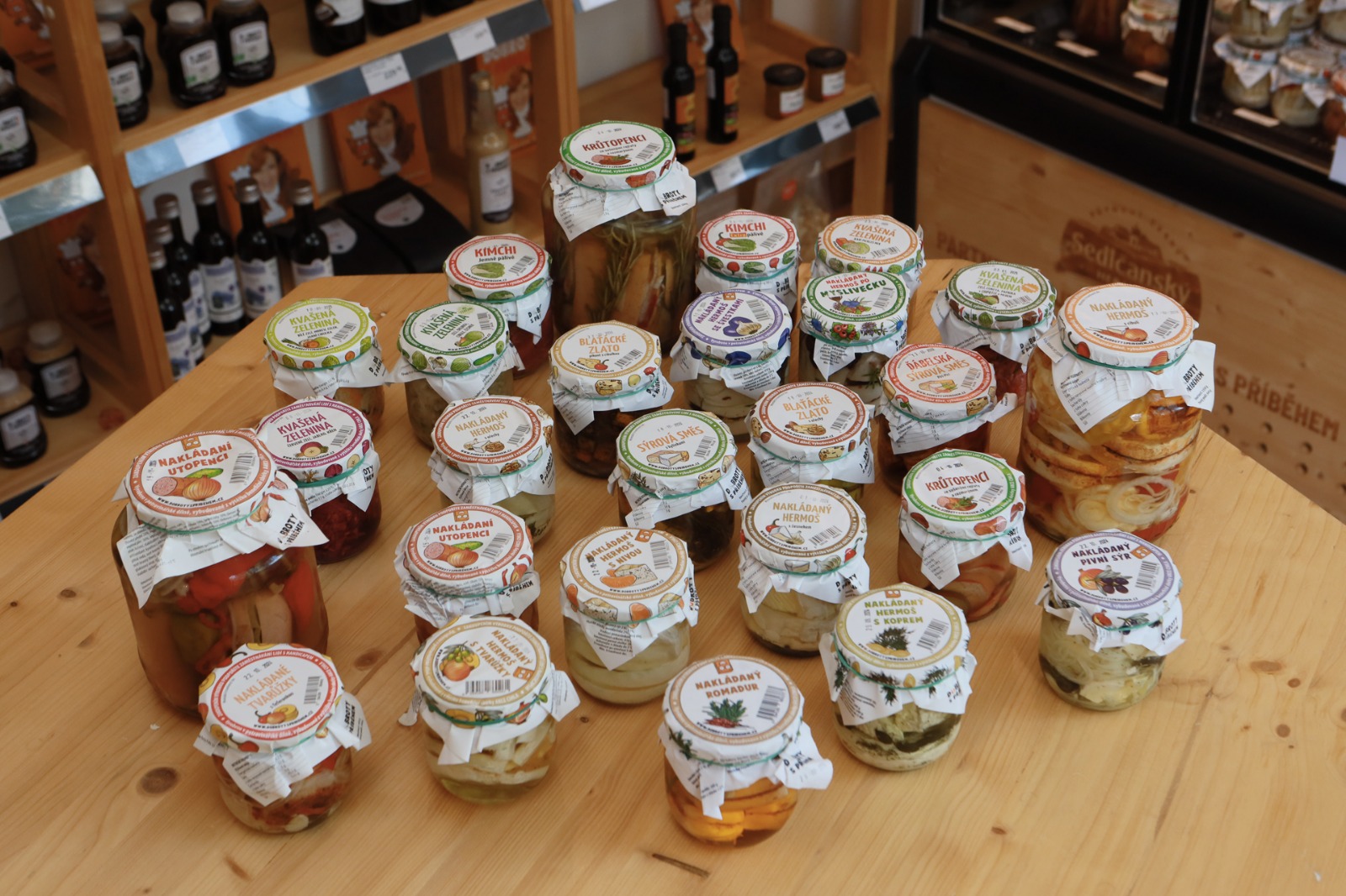 V nabídce toho máme opravdu spoustu, od našich skvělých nakládaných specialit až po řadu zajímavých výrobku od malých producentů z celé České Republiky. Těšit se můžete na mléčné výrobky v BIO i nebio kvalitě, ovocná vína, vynikající snídaňové směsi, čaje, výběrovou kávu, domácí paštiky třeba i z kapra a řadu dalších kuchyňských vychytávek a potravinových zajímavostí.